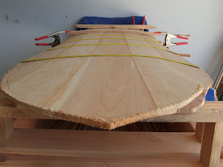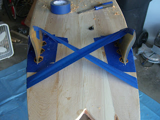 Next came gluing the the top planks. I first trimmed a little more of the top planks down to make it match the outline of the board better. I then proceeded to glue and clamp the top planks on according to directions.